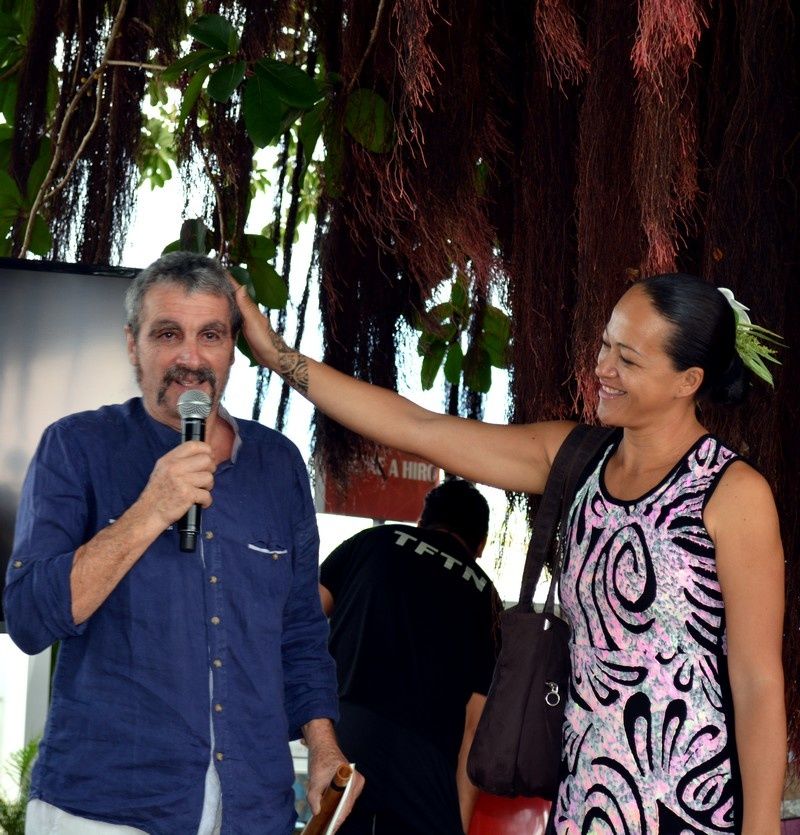 Le couple a ému plus d’un visiteur de ce salon. Ils étaient un peu chez eux puisqu’ils ont vécu au Îles Marquises mais leur gentillesse, l’émouvante retrouvaille avec leur fille adoptive marquisienne, qu’il n’avait pas vu depuis 6 ans, sur le paepae avant la présentation du l’ouvrage des éditions Haere Po sur fond musicale de la flûte de Gilbert a enthousiasmé les visiteurs présents.