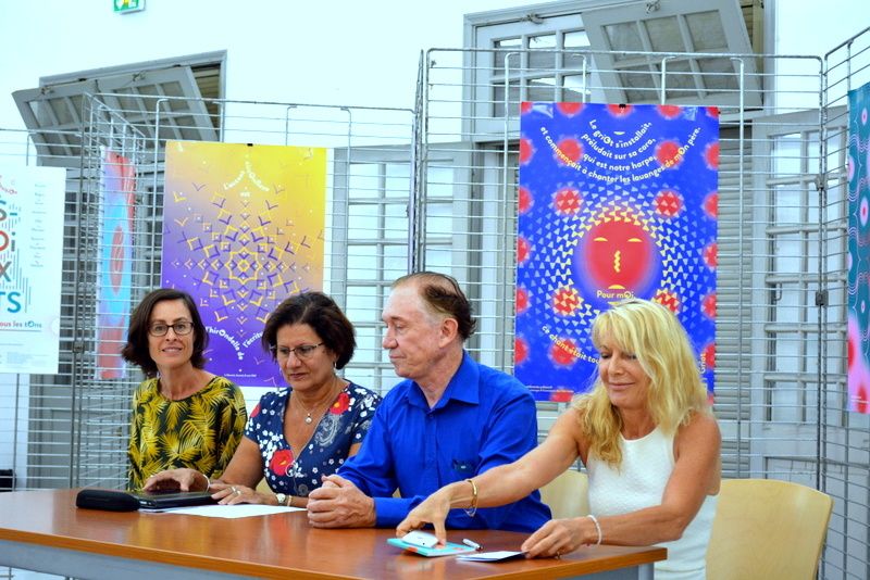 Le directeur de la bibliothéque et les intervenants de cette opération Daniel Miroux avec la directrice du Creipac, et les représentantes de l'enseignement et vice-rectorat. Photo Joêl PAUL