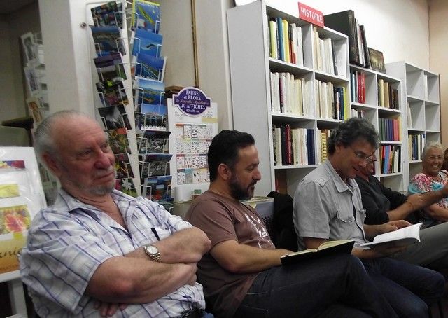 Deux photos de Jean-Marie Creugnet à la librairie Calédo Livres celle de gauche avec Cathie son épouse